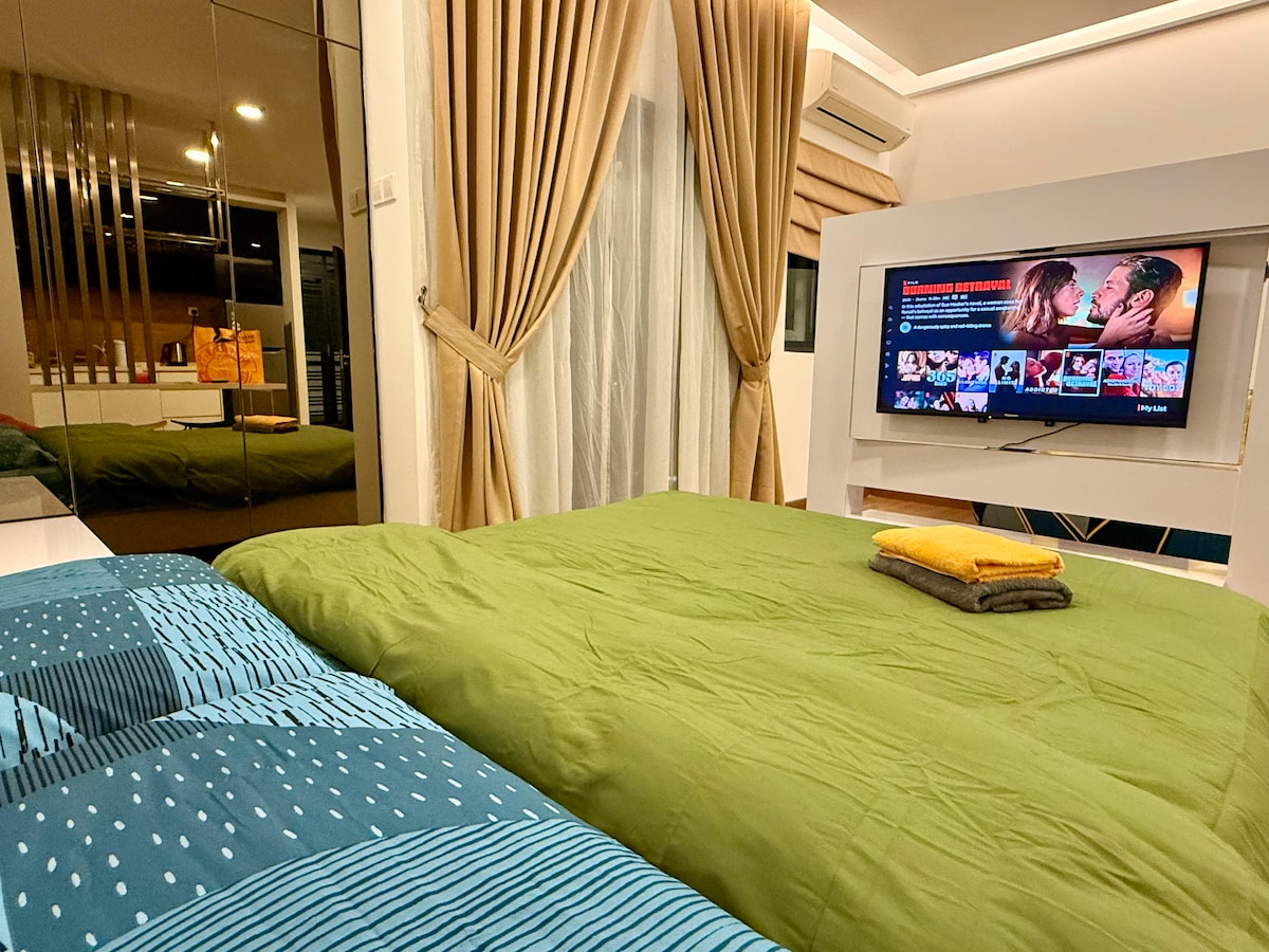 Why stay at The Palm's Junior Suite at Lucentia Residence - the views of KL - beautifully decorated with a fun spirit - centrally located - near public transportation - fast wifi - TV with Netflix, Apple TV, Prime Video - 2 gorgeous pools - gym, pool table, BBQ pits, paino - super host manager - garage parking - recommended for 2, max can sleeps 3 - LaLa Port Shopping Mall & entertainment street are attached - grocery, drug store, and many restaurants are attached - movie theater Gsc beside