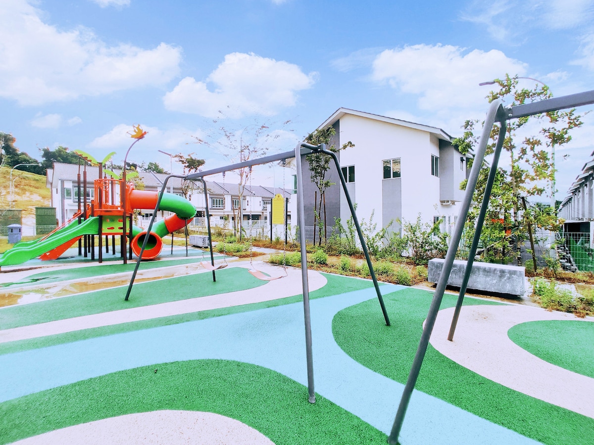 舒适双层排屋,车程3分钟即达文冬市中心。全屋冷气,设有4房3厕,可容纳12人以上(可加床)。配备Spinal Pro & Plus床垫、K歌系统、热水器、饮水机,提供舒适与娱乐享受。设有私人停车位(可停2辆车)与自动门,安全便利。支持24小时自助入住,适合家庭或朋友聚会。 Cozy double-storey house, only 3 mins' drive to Bentong town. Fully air-conditioned, 4BR/3BA, sleeps 12+ (extra beds available). Features Spinal Pro & Plus mattresses, karaoke, water heaters, dispenser, private parking (2 cars), auto gate & 24h self check-in.