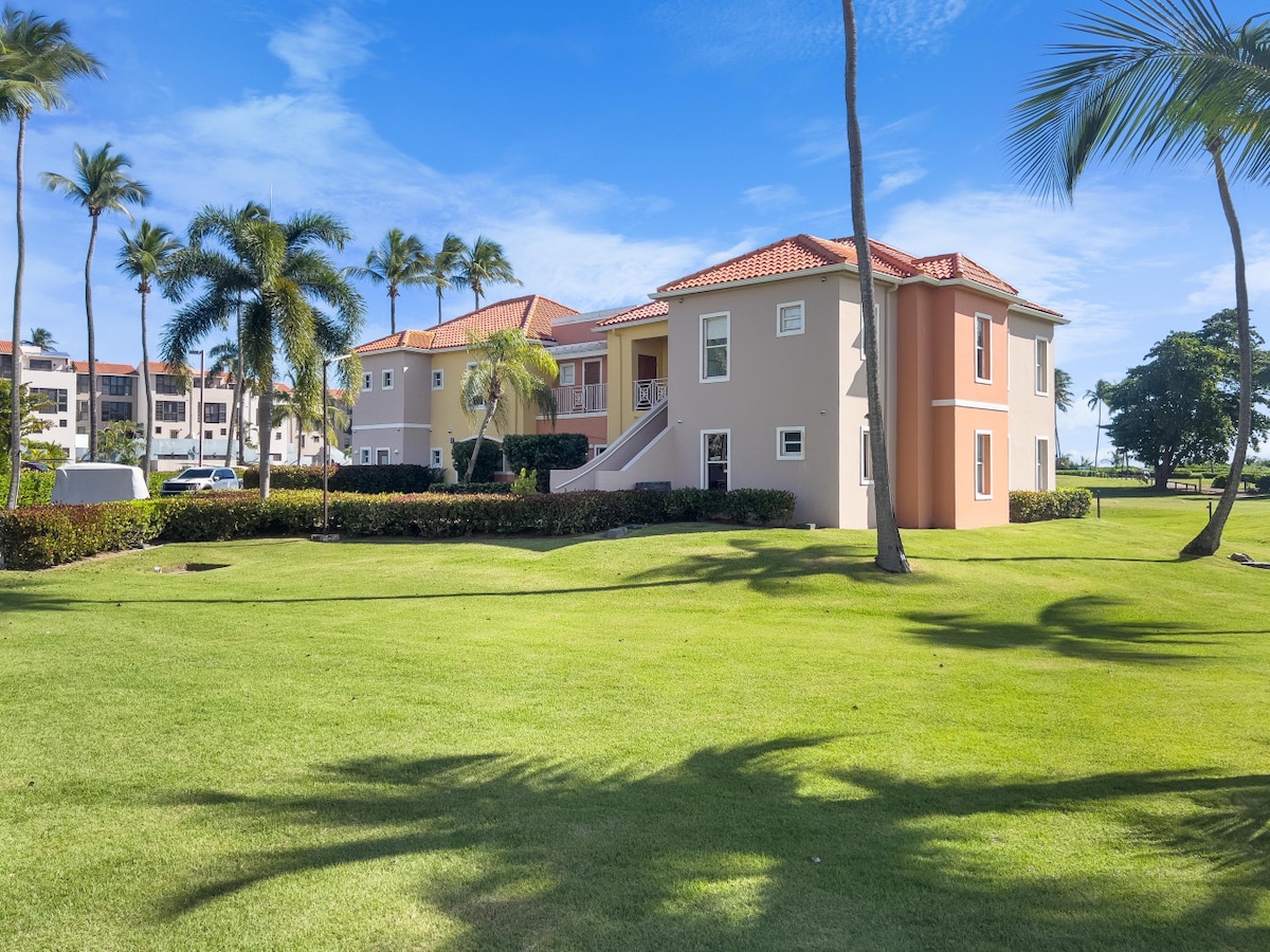 Beautiful beachfront villa with private lawn. Relax in paradise in your private space. The extended patio/lawn has a high top dining table with Sunrise and Sunset view. INCLUDES SWIMMING POOL ACCESS. The villa is steps from the beach and on the 3rd hole of the golf course with views of Vieques. We are on a resort in a gated community with 24 hour security. Fast 240 mbps internet, 2 * 60 inch+ Smart TV with cable, and Disney+. One reserved car space.