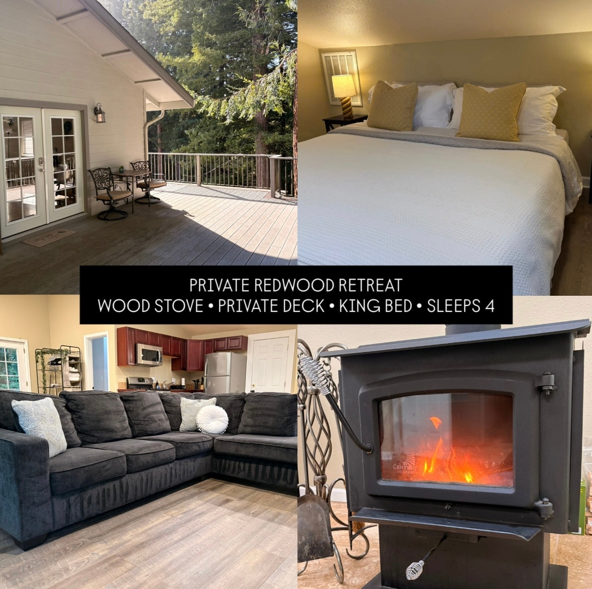 Private quiet get-away home tucked amid stunning redwood trees provides a serene, peaceful stay. With large picture windows in every room, gas fired fireplace, open floor plan and tasteful amenities, the home is cozy and comfortable. Large deck and beautiful landscaping allows enjoyment inside and out. Walk across the driveway to Sequoia Park, walking trails through the redwoods, Sequoia Park Zoo. The nearby community provides shops, restaurants, and medical services.