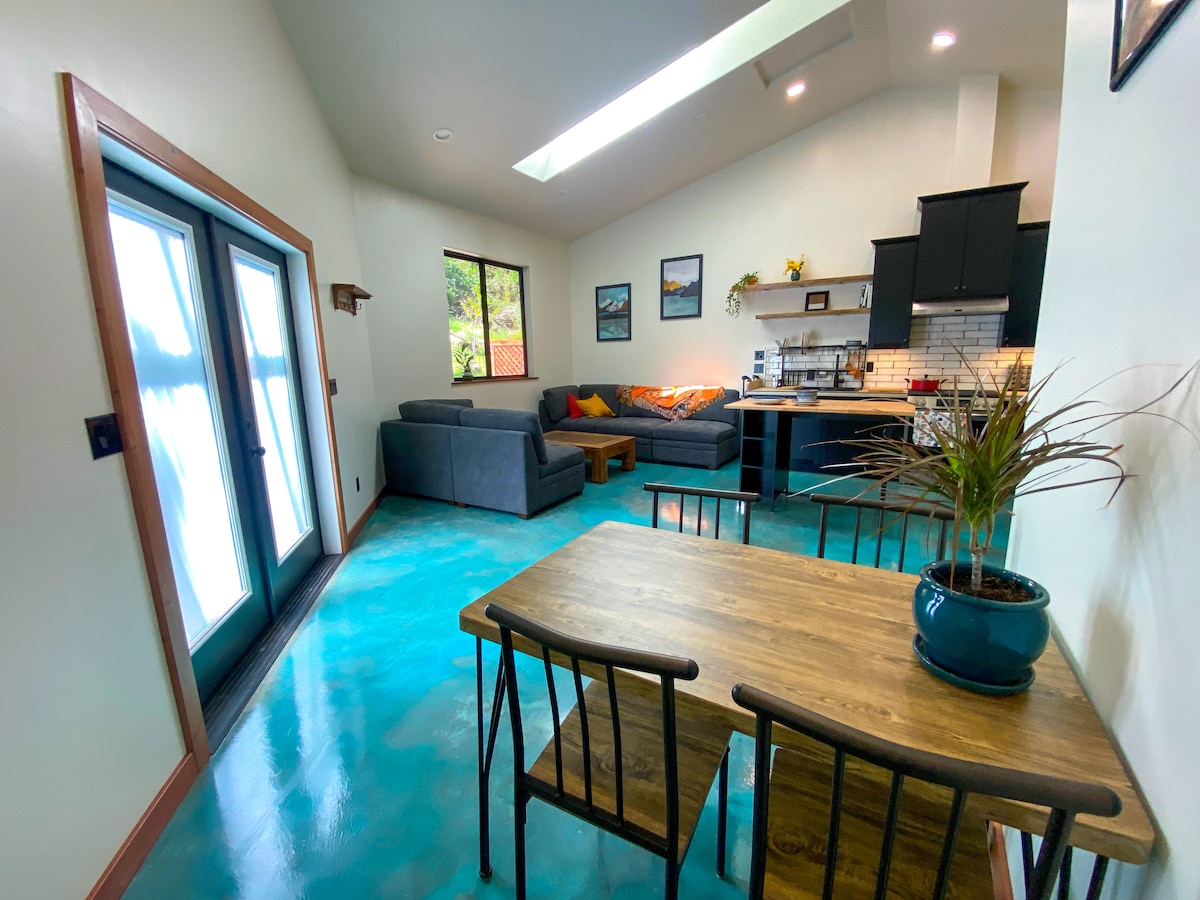 The Surf Sanctuary retreat is minutes away from remote beaches and redwoods. Please note: Redwood Park is 30 minutes away. The sanctuary is a 1 bedroom 1 bathroom guest house with a full kitchen and bathroom. We are located within a 5 minute drive to the beach, and 30 minutes away from Redwood State and National Parks. Perfect launch location for hiking, surfing, cycling and enjoying this amazing place. Enjoy our beautiful quiet space for relaxation and renewal. The space is shoe and scent free.