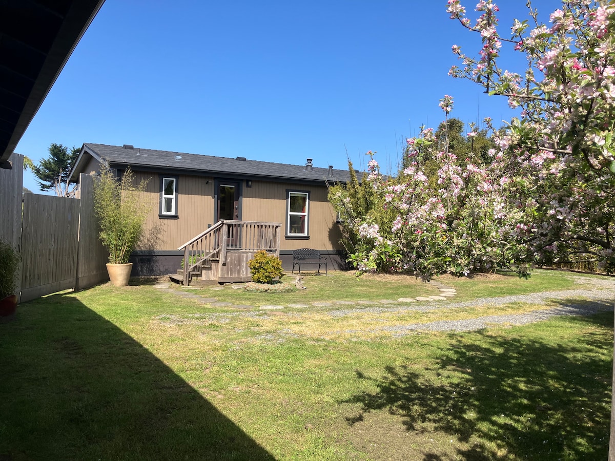 Bright and cherry space two blocks to Cal Poly Humboldt and walkable to the Arcata Plaza. Newly remodeled! You’ll have private laundry, a fenced yard and a fully equipped kitchen. Soft and cozy rugs, towels and linens. Keurig coffee and tea provided. Pets welcomed! Private entrance and secure, off street parking. One block from a beautiful park with trails, minutes to redwoods and the ocean. This unit is attached to a main house, but no areas (except parking) are shared. LGBTQ+ owned 🌈💜