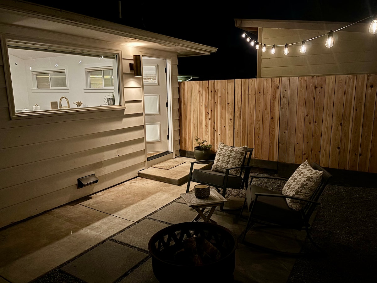 Experience stylish comfort at this centrally located Arcata retreat. Walk to downtown, CP Humboldt, or the redwood forest—or enjoy hillside views and sunsets from the property. Redwood Park, with its stunning trails, is only 2 minutes away. Highlights: -Private entrance/patio -Full kitchen -Washer & dryer -Dedicated workspace -King bed -Full futon/living room Note: 100% smoke-free: indoors and out. We have a Ring camera by the driveway for safety and peace of mind. It records outdoors only.