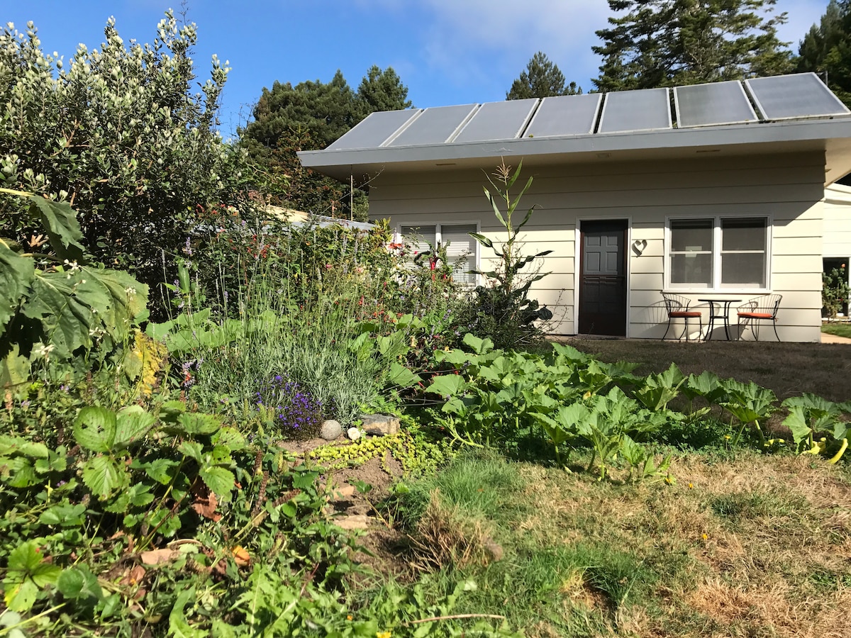 We are an urban homestead complete with a permaculture-inspired garden, chickens, and bees we invite you to enjoy. We provide our guests with eggs, milk, coffee, tea, pastries and fruit. All our cleaning products are non-toxic. The Arcata Community forest where you can enjoy a peaceful stroll or an active long run is just down the street. Our home is close to the beach, downtown Arcata, and Humboldt State University. You’ll love our location, your hosts, the views, and our garden.