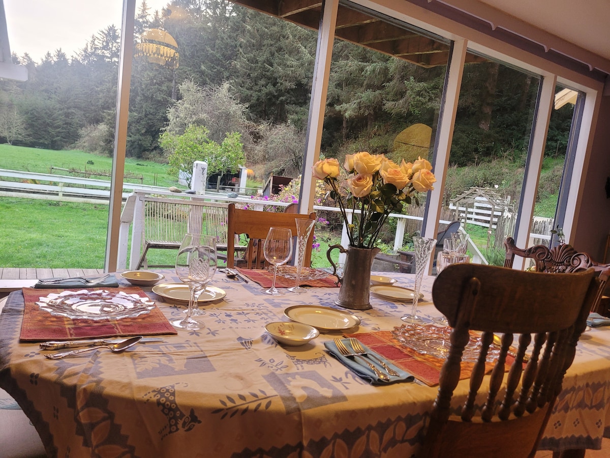 The cottage is cozy and comfortable, with handcrafted touches throughout. It is in a beautiful, rural setting with an easy 10-15 minute drive to both downtown Eureka and downtown Arcata. The cottage is on a 4-acre property nestled up against a small redwood grove, allowing for plenty of privacy for guests who are looking for a secluded getaway. Cottage guests are also welcome to make themselves at home on the property and in the garden. The cottage is ideal for 2 people