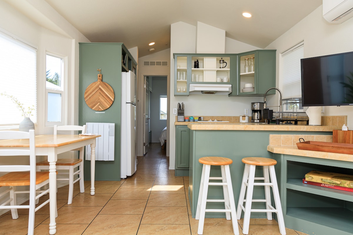 Experience stylish comfort at this centrally located Arcata retreat. Walk to downtown, CP Humboldt, or the redwood forest—or enjoy hillside views and sunsets from the property. Redwood Park, with its stunning trails, is only 2 minutes away. Highlights: -Private entrance/patio -Full kitchen -Washer & dryer -Dedicated workspace -King bed -Full futon/living room Note: 100% smoke-free: indoors and out. We have a Ring camera by the driveway for safety and peace of mind. It records outdoors only.