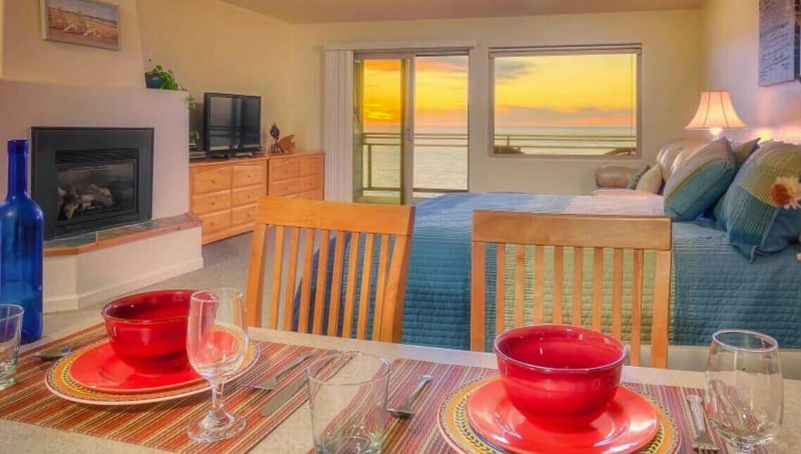 Room Two in the Historic Schoolhouse Inn offers a beautiful redwood and park views from the patio, a king-sized bed with plush linens, full coffee bar, and a newly renovated bathroom stocked with refreshing amenities. Enjoy your morning coffee with the sounds of sea lions echoing before you, or stay cozied up with a hot cup of tea and a show on the Smart TV. Whether you’re here to relax or adventure, this is the room for you! *2 guests only permitted in this room*