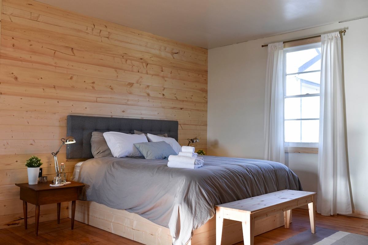 Suite 9 is the coziest room at Humboldt Bay Social Club—a boutique hotel, bar, restaurant, and event space set on the shores of Humboldt Bay in a restored WWII-era blimp base. Located in the same building as our Lobby Bar, this charming suite sleeps two in a queen bed with a memory foam mattress and includes a spacious private bath with a classic clawfoot tub.