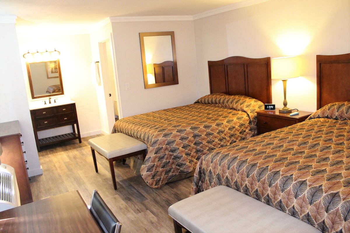 Room Four in the Historic Schoolhouse Inn is a cozy retreat featuring two inviting queen beds, perfect for families or friends traveling together. While this suite has no balconies, it offers a charming window seat where you can relax with a book or simply take in the view. Inside, enjoy plush linens, a full coffee bar, Smart TV, and a small but thoughtfully renovated bathroom stocked with refreshing amenities, creating a comfortable and restful stay. *4 guests only permitted in this room*