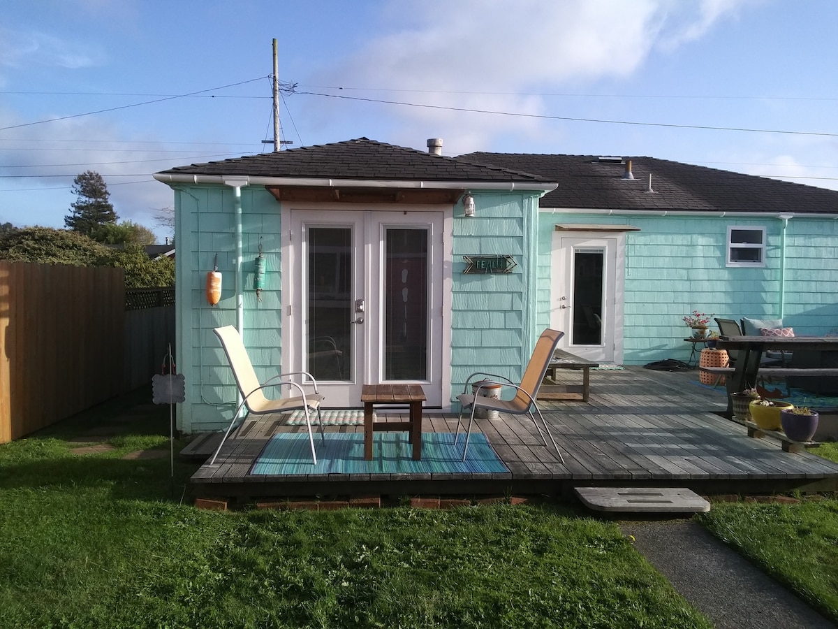 Holistic Haven offers a distinctive stay with our freshly remodeled lower studio cottage that serves as a calm retreat for your body, mind, and spirit. Take in sweeping views of King Range National Conservation from your private wrap-around deck or jet tub. Plush bedding, stylish kitchen and a living space with a view. Additional experiences available upon request. At HH, you don’t have to choose between ocean or mountain views. Double Stock Hot Tub Experience is now available!