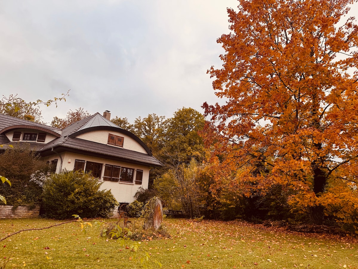 Genieße deinen Aufenthalt in Saarbrücken auf dem stilvollen Triller mit wunderschönem Blick ins Grüne und die Saarbrücker Innenstadt. Mach es dir bequem in den zwei sonnigen Zimmern im Dachgeschoss einer 2-geschossigen Wohnung. Das Schlafzimmer ist ausgestattet mit einem Doppelbett 140x200 cm und einem Kleiderschrank. Im Wohnbereich findet sich eine Kitchenette, Ess-/Arbeitstisch , Sofa und TV mit Disney+, Netflix und Prime Video. Ein Bad mit Dusche steht zur alleinigen Nutzung zur Verfügung