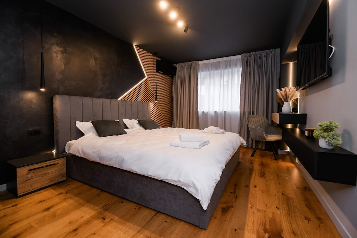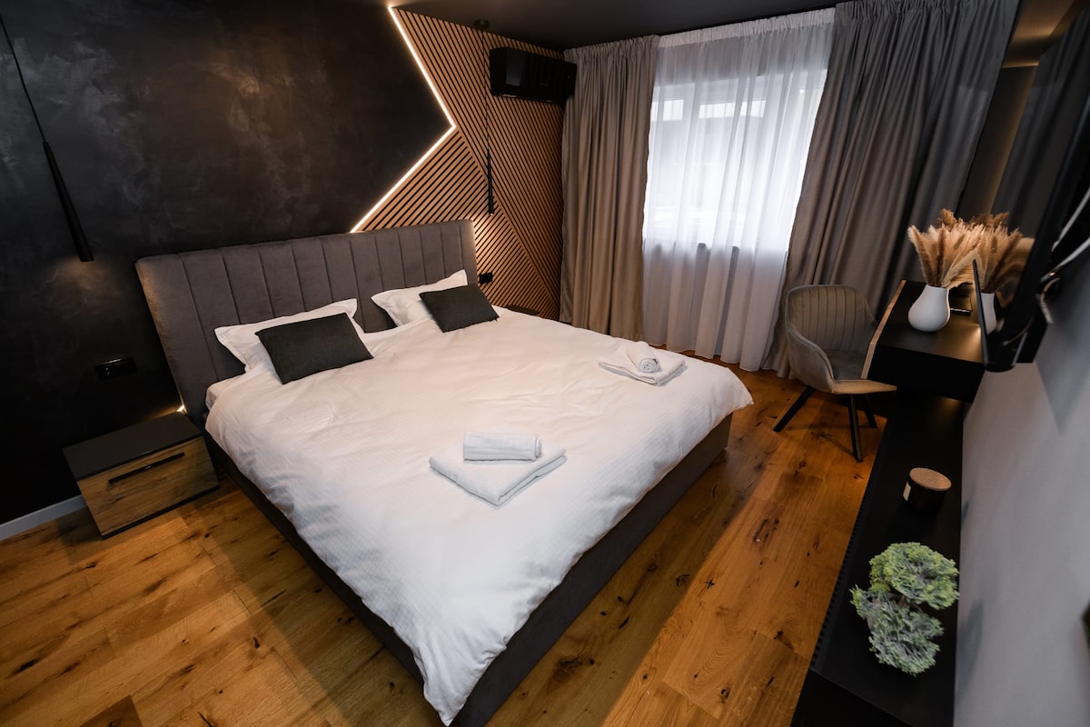 PNT Apartment - Eleganță și Confort în Inima Alba Iuliei Descoperiți rafinamentul la PNT Apartment, situat la 10 min de mers pe jos de Cetatea Alba Iulia. Spațiul modern și confortabil, dormitorul Super King, baia elegantă și bucătăria funcțională vă oferă o experiență de neuitat. WiFi rapid, parcare privată și acces facil la atracțiile locale fac acest apartament locul ideal pentru explorarea Transilvaniei. Rezervați acum pentru o ședere plină de eleganță și relaxare!