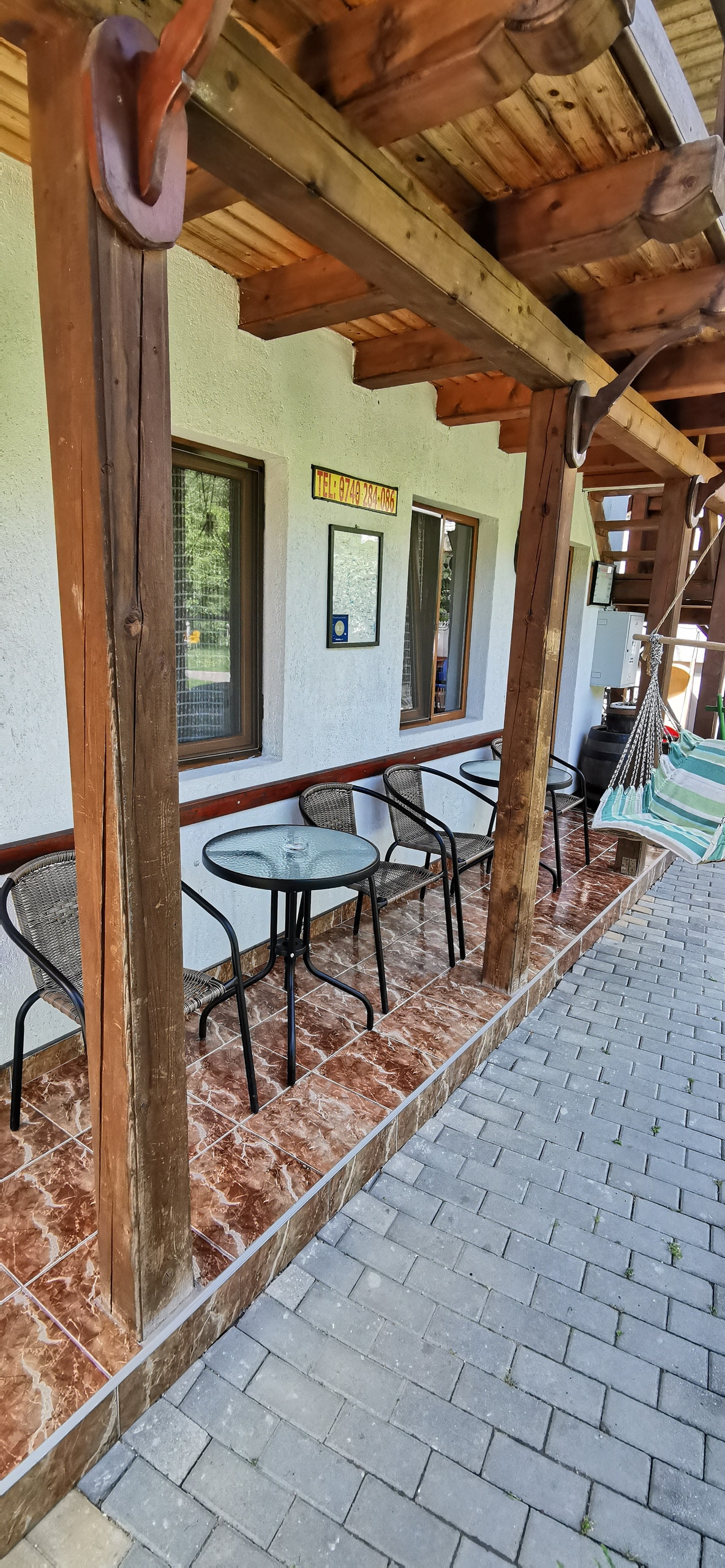 Această cameră se închiriază pentru maxim două persoane. Este decorată tradițional, cu gust, dispune de mobilier de lemn, de foarte bună calitate, geamuri si ușă din termopan, parchet/ mochetă, tv cu o multitudine de canale, wi-fi. Dispune de baie proprie cu duș cu apă caldă. Dacă ești iubitor de cafea, o poți servi chiar in fața camerei, pe propria "mini-terasă". Dispunem de mai multe camere de acest tip, la parter și la etaj. Mesaj privat dacă aveți preferințe.