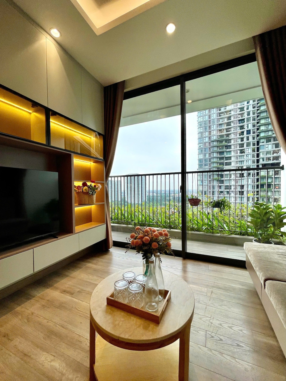 Chào mừng bạn đến với căn hộ Masteri studio cao cấp, nơi bạn có thể thư giãn với tầm nhìn hồ nước uốn lượn và toàn cảnh thành phố. Căn hộ được trang bị đầy đủ: điều hoà 2 chiều, máy giặt, nước nóng, tivi, tủ lạnh, bếp và đồ dùng nấu ăn. Tòa nhà có siêu thị, ngân hàng, quán ăn Hà Nội đặc trưng ngay bên dưới. Chỉ vài bước là tới trung tâm mua sắm, rạp chiếu phim, công viên và biển nhân tạo 24ha! Căn hộ luôn được giữ gìn sạch sẽ và chăm chút kỹ lưỡng – bạn chỉ việc xách vali đến và tận hưởng!