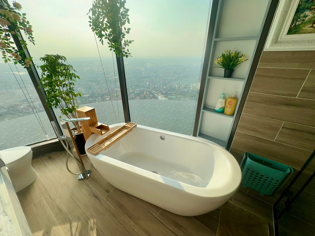 Relax in this cozy yet luxurious Ecopark apartment with ensuite bathtub, private sauna, and a complimentary mini bar. Kitchen includes air fryer, microwave, full kitchen - including cookware and filtered water system, plus washer & dryer. Free gym, pool, and onsen access await in lush green surroundings. Just 20 mins to Hanoi old quarter with hourly bus service. Monthly guests enjoy extra complimentary perks for even more value.