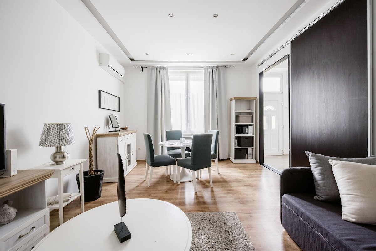 Our modern, high-end studios are located in the heart of the city, right at Oktogon, near Andrássy Avenue and Király Street. All units are private, each featuring its own bathroom. They are also equipped with a kitchenette, Wi-Fi, LCD TV, and air conditioning. The apartment building has a reception, but it is not 24-hour, and is equipped with CCTV cameras.