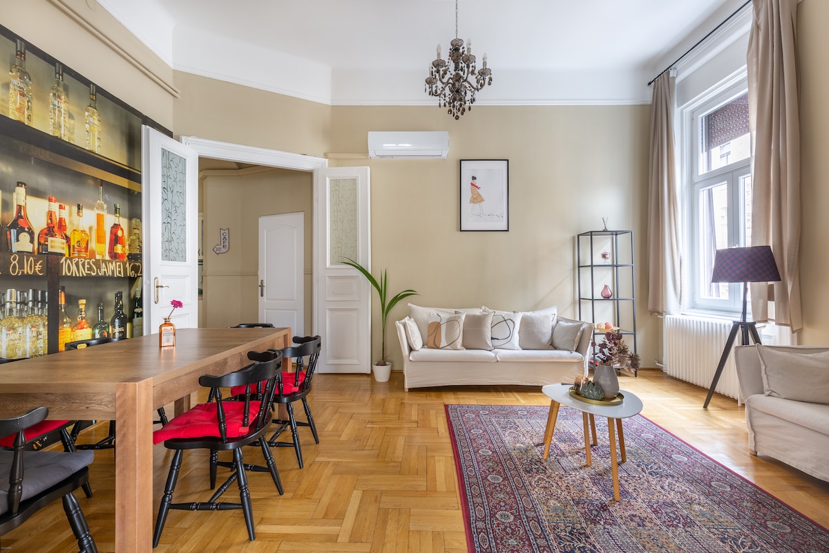 GUEST FAVOURITE AWARDED, 2BEDROOMS APARTMENT HOSTED BY SUPERHOST! Romance, Spa, and Luxury A pearl in the center! Private jacuzzi, infrared sauna, massage chair, 2 bedrooms, 2.5 baths in a uniquely apartment! We tried to recall the atmosphere of the spa town of Budapest in the 1920s and 1940s. The apartment, decorated in an Art Deco style, recalls the atmosphere of bourgeois luxury that aristocrats looking for relaxation, romance, and spa experience were looking for in Budapest in the 1920s.