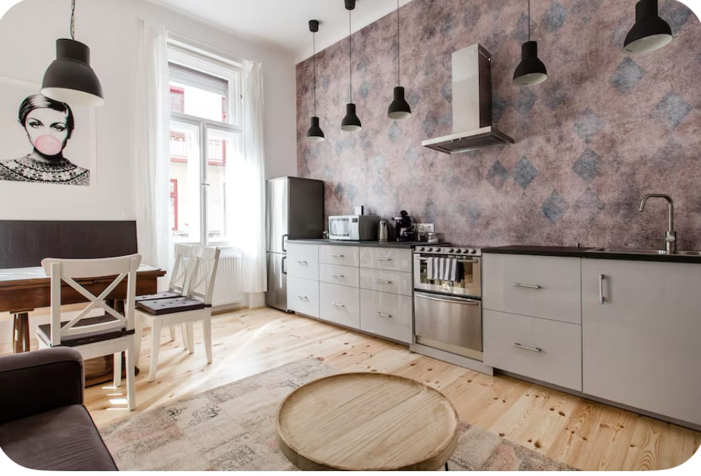 Have you ever dreamed about an artist's extravagant studio? Feel the vibe and try a famous Hungarian painter Lajos Vajda's renewed studio loft, facing the city biggest park Városliget. Park for free in our underground garage and cook in our kitchen with striking wood cabinets and exposed brick. A factory-chic chandelier hangs above a modern dining table while a living area basks in natural light from industrial windows. Beautifully designed in 100 -years-old house, near to Heroes square.