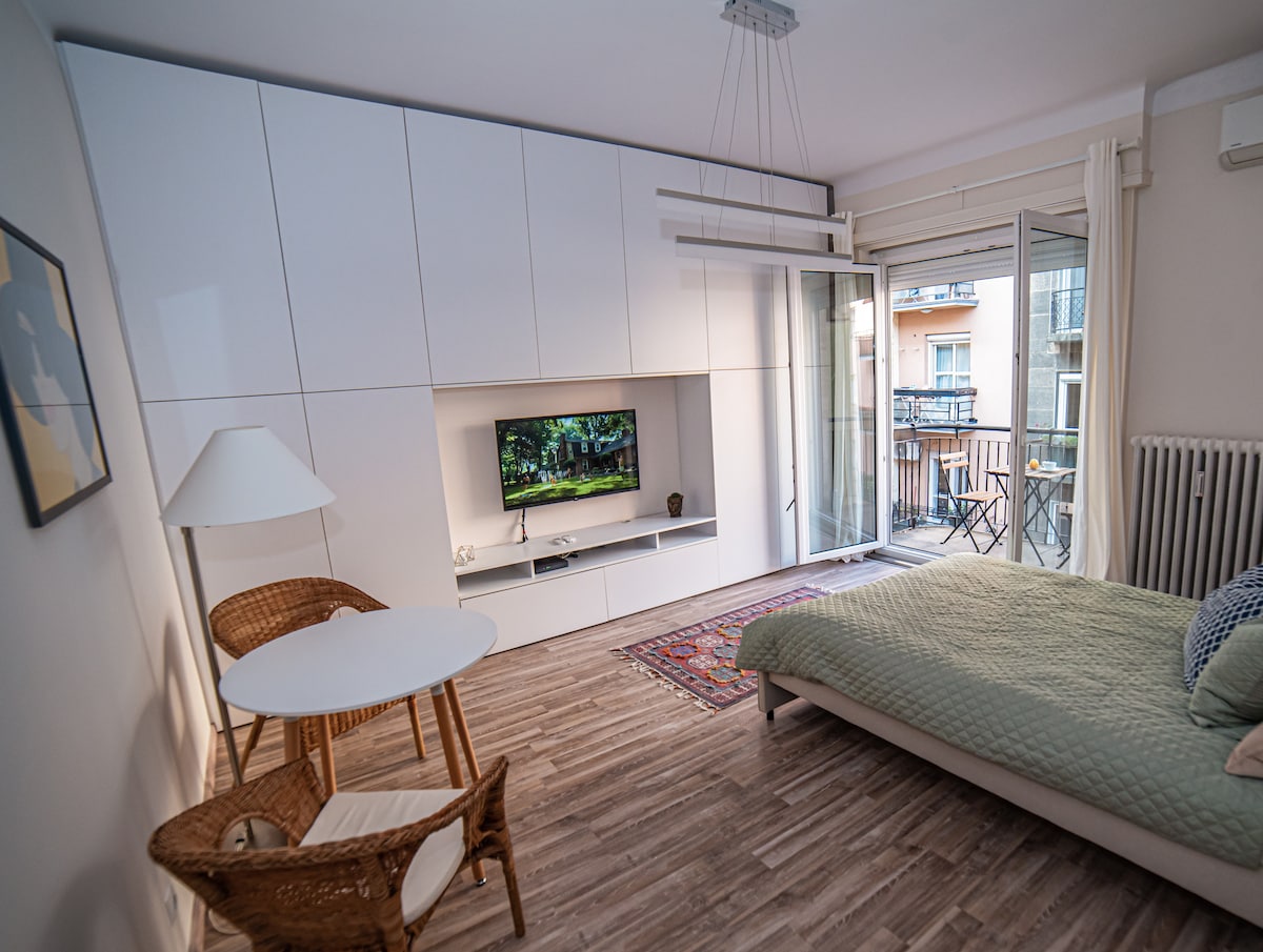 This nice and brand new studio is waiting for its guests in the most beautiful and calmest downtown areas in Budapest, The apartment has everything you need for the comfort of a traveler, a fully equipped kitchen and a bathroom with a shower. The apartment has a balcony overlooking a quiet street. All means public transport are just a few steps away. One of most famous streets, around a corner where countless famous restaurants can be found.