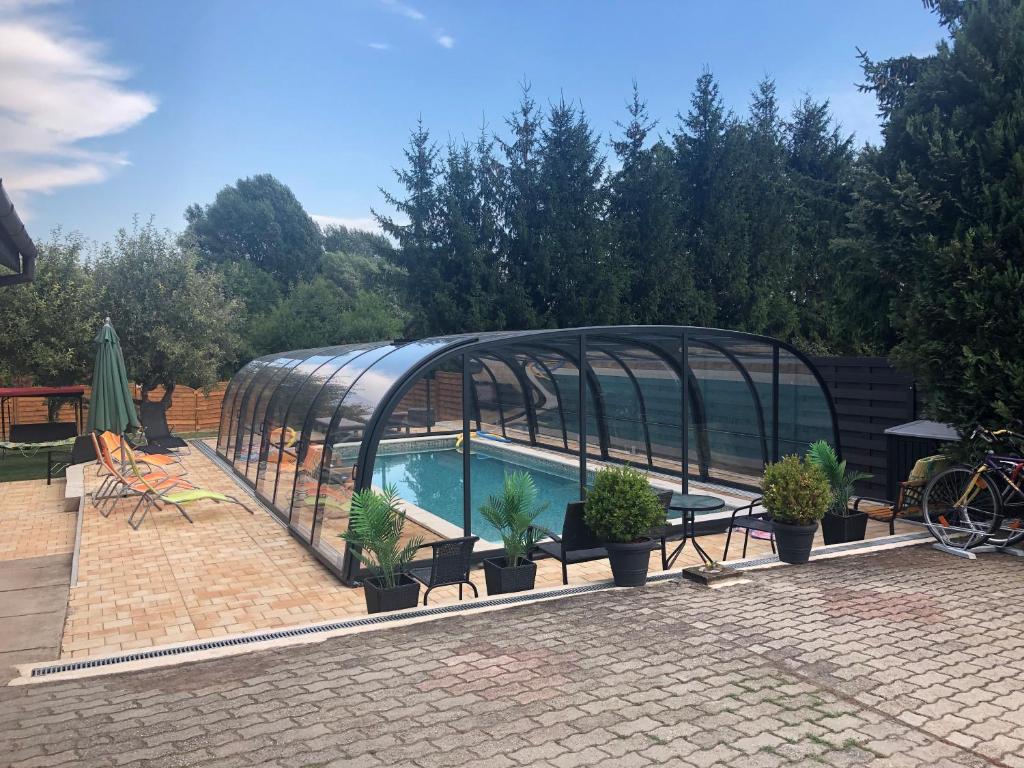 Жильё для семейного отдыха с бассейном и спортивной площадкой, местом для барбекю. Тихий и спокойный район Хевиза. Рядом расположен музей римских раскопок и детская площадка, в шаговой доступности Винная Горка с множеством ресторанов.Расстояние до термального озера составляет 1,7 км по ровной улице.