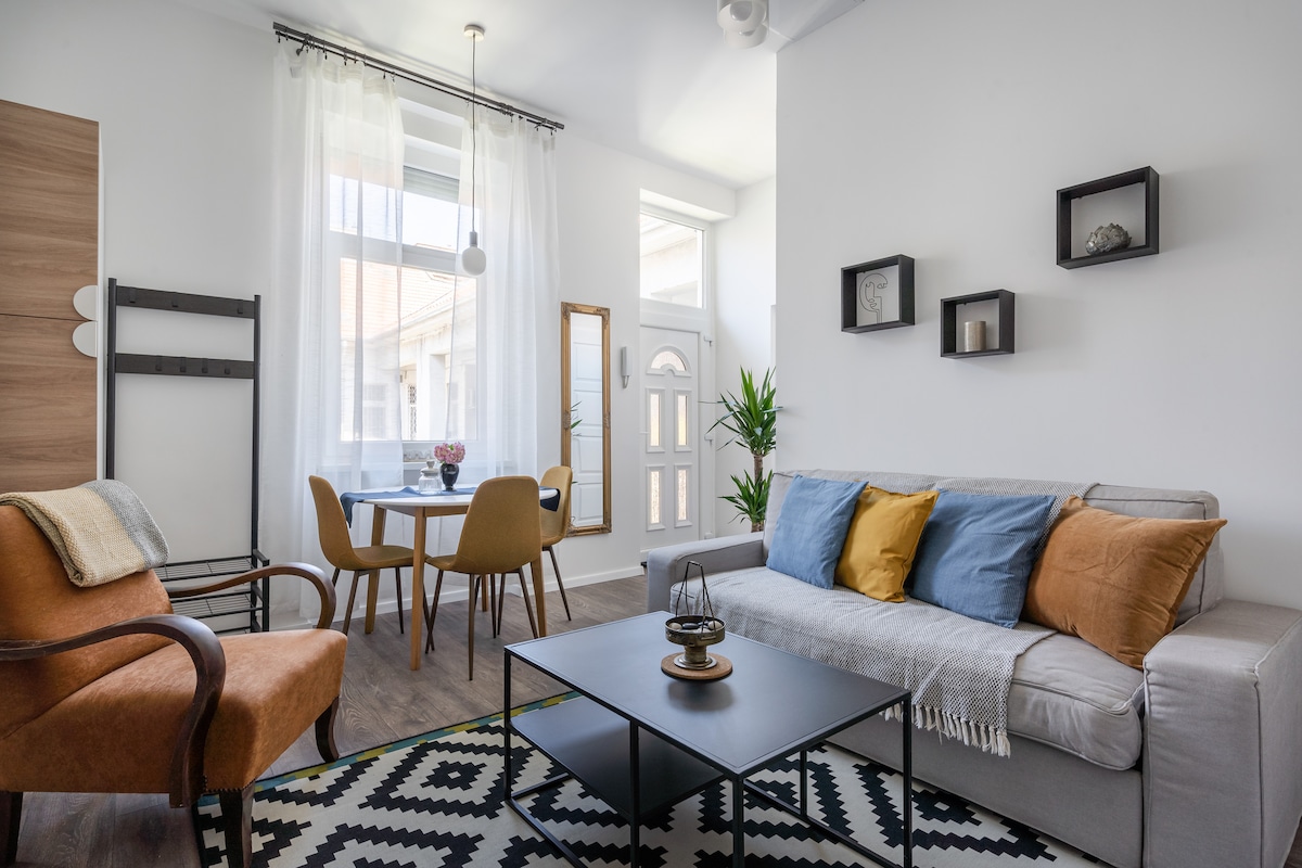 The stylish apartment has been fully renovated with modern design in a brand new building. The apartment is on the 4th floor with an elevator in a quiet and calm area in the building. Located in one of the most fashionable areas of Budapest with city’s best bars, pubs, restaurants, museums, galleries, designer clothing boutiques, shops and historical architecture at your doorstep. The apartment has one bedroom, a bright living area with fully equipped kitchen and one bathroom.