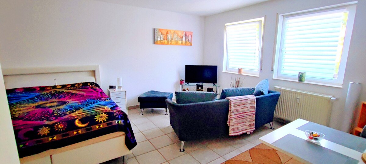 Das ruhig gelegene, gepflegte und helle Appartement (28 qm) in Trier-Ruwer-Höhenlage befindet sich im Souterrain (1 Stockwerk nach unten) eines 5-Parteienhauses mit Ausblick ins Grüne. Im Eingangsbereich befindet sich eine kleine Küchenzeile. Von hier kommt man geradeaus ins Bad mit Dusche/WC. Links - getrennt vom Küchenbereich- liegt der geräumige Wohn-/Schlafraum. Mit einer gemütlichen Sitzecke, Smart-TV und WLAN können Sie hier nah an der Natur sehr gut entspannen.