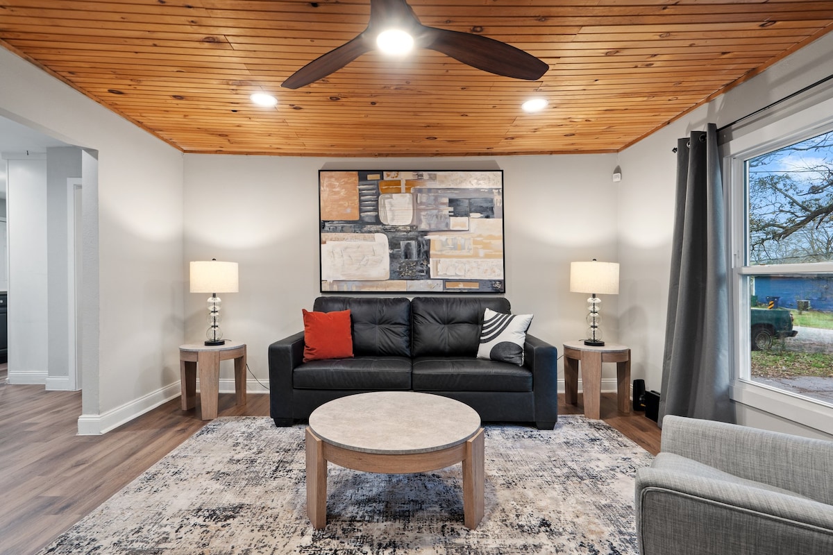 3 bed room house with old ship-lap walls and rustic charm. Originally moved to this location in 1945 and remodeled in 2020. This quiet gem is only minutes from lake Tawakoni. Central AC, ceramic tile shower with river rock base. Relaxing full size bed in the 2nd bed room and King in the master bedroom. Plenty of sitting room in the living room to relax and unplug. Deep porcelain tub with pedestal sink in the second bath, perfect for a bubble bath.