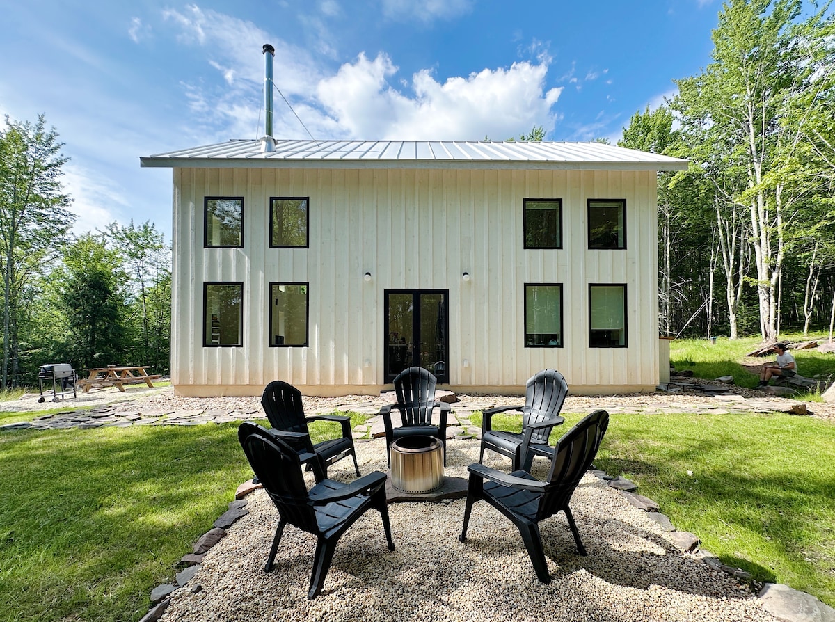 Nestled in the serene woods of Saugerties, NY, this luxurious A-frame cabin offers modern comfort and natural beauty. Just 10 mins from Woodstock and 2 hrs from NYC, NJ. it sits on a private 2-acre lot. Easy Access. Featuring premium queen Casper mattresses, a Breville espresso machine, a 4K projector, a firepit, grill, a cedar wood-fired hot tub & Sauna. Dog friendly! A cozy & stylish retreat near hiking, skiing, and top dining spots in the Catskills. Visit our ig ‘highwoodsaframe’ for more!