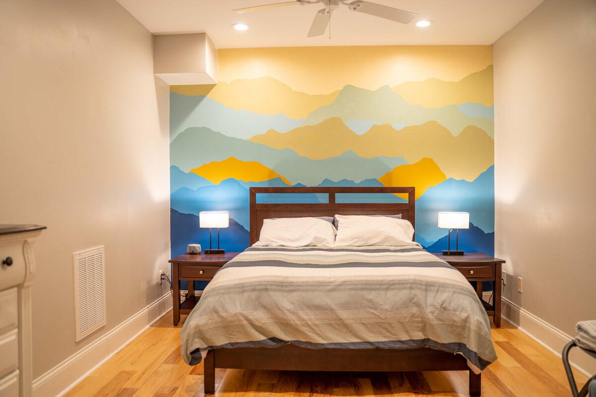 Southside and adjacent to the renowned Sculpture Fields at Montague Park, a 33-acre outdoor art museum! Close to everything, making it easy to plan your Chattanooga getaway! Queen bed en-suite with a desk, private laundry, kitchenette and garage to store your bikes, kayaks, etc. Great location right off of Main Street, and close to downtown, the river & convention center. -Smart TV -Coffee & Sugar -Fridge -Air Fryer -Microwave -Dishes -Blackout Curtains -Ceiling Fan - Early/Late Check-In Option
