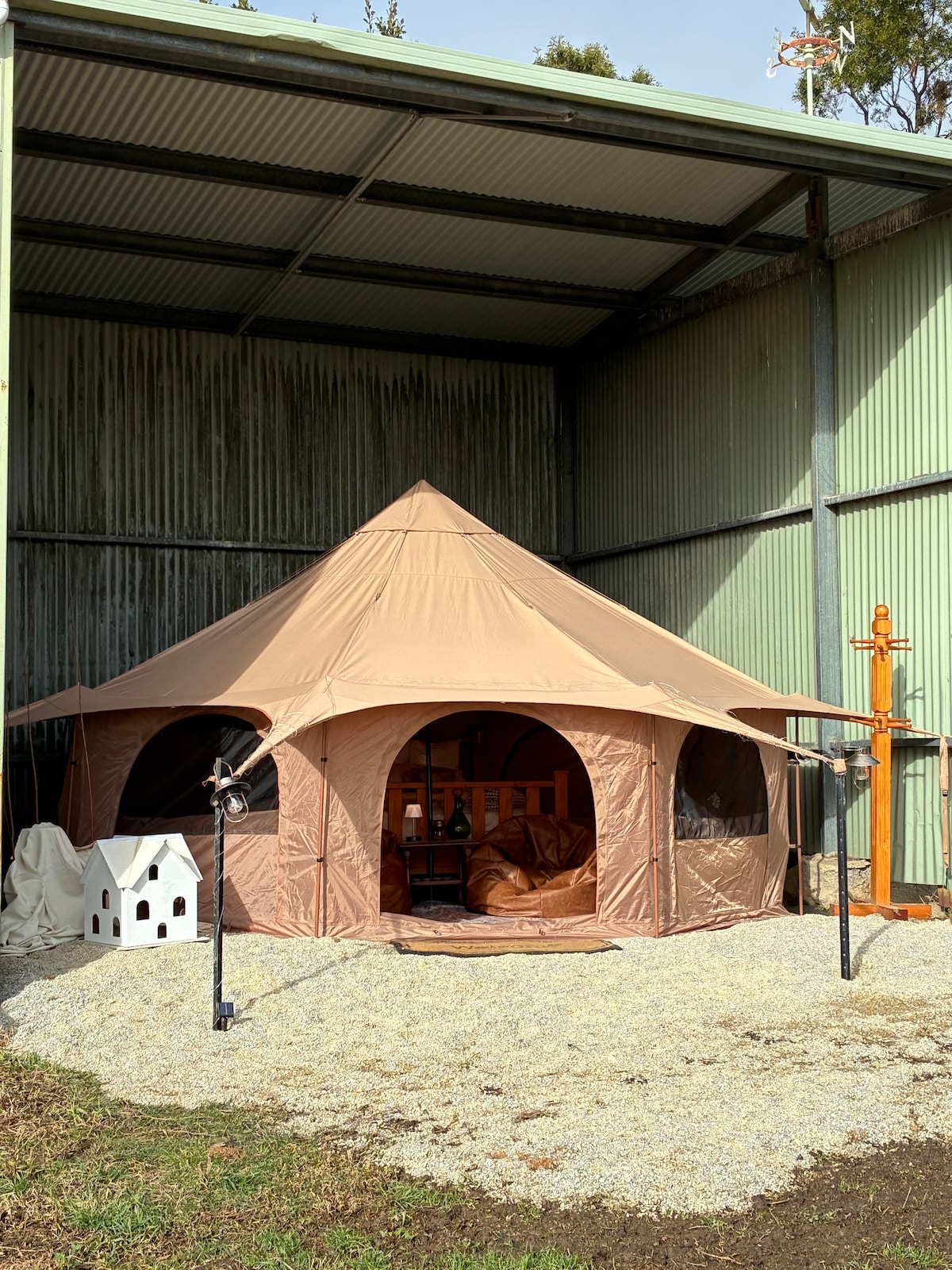 Hidden glamping spot by the river. Enjoy the lovely setting of this romantic spot in nature. Have a ride on the kayak or sup board and relax near camping fire under night sky! Please consider weather condition especially during the winter season. You are travelling to the bush to off the grid site. No electricity, only telstra and partners network reception. But it's perfect get away from city..
