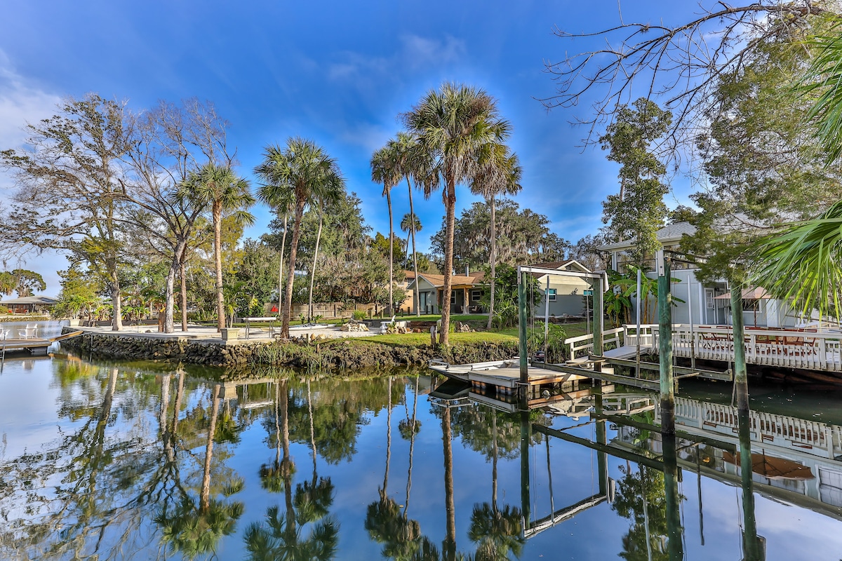 💦WATERFRONT HOME ON CANAL IN GREAT LOCATION. Use our KAYAKS to visit the MANATEES at 3 SISTERS and all the local springs. 🔴 BOAT SLIP for SCALLOPING! 🔴 POLES to fish right in the backyard. 🔴 1 man, 1 woman bicycles, fire pit table and grill. 🔵 UNIQUE RETRO RETREAT Vintage style fridge in fun, open concept kitchen, record player/records and comfy couch. We are close to everything... SWIMMING WITH MANATEES!! KAYAKING IN THE SPRING FISHING SCENIC/AIRBOATING SCALLOPING