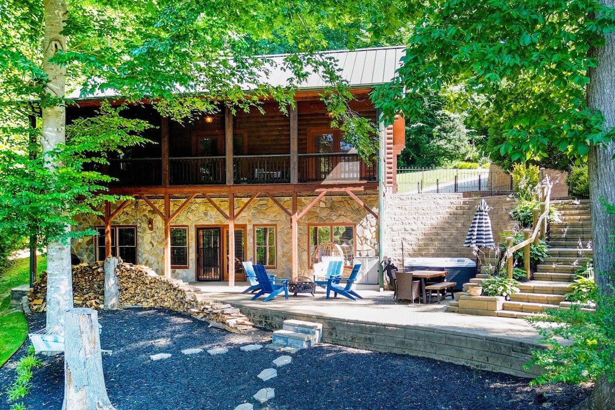 Waterfront Log Cabin w/Hot Tub, Kayaks, Firepit