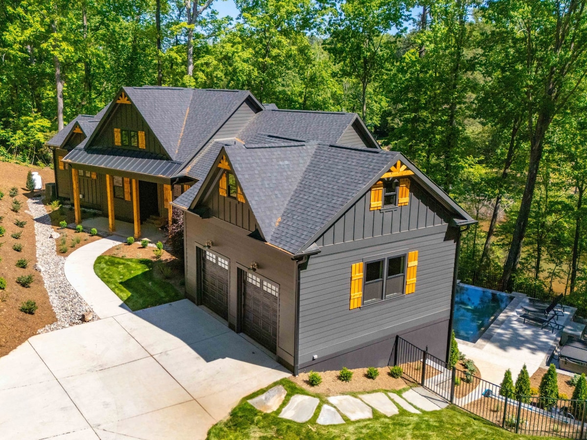 豪华湖滨度假屋,泳池、热水浴缸、扑克、火坑!