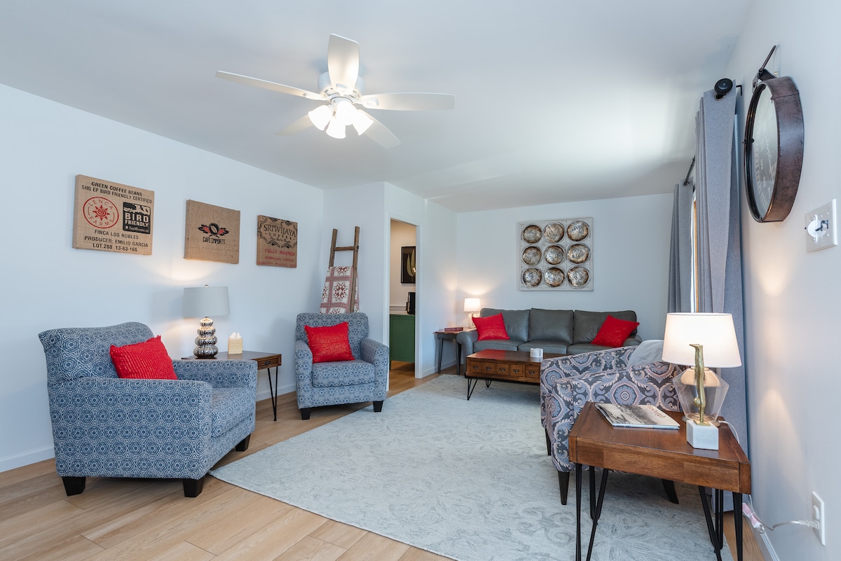 Our Cottage was originally the Barber shop here in Warriors Mark. It was eventually converted into an efficiency apartment. I completely renovated the Cottage over the summer of 2024. The space is very comfortable and inviting with everything you need to make your stay enjoyable. The space is perfect for a couple. The loveseat easily converts to a full size bed 51x72 inches. It is comfortable for one adult or 2 children. Close to fishing: Little Juniata, Spruce Creek, Raystown Lake.