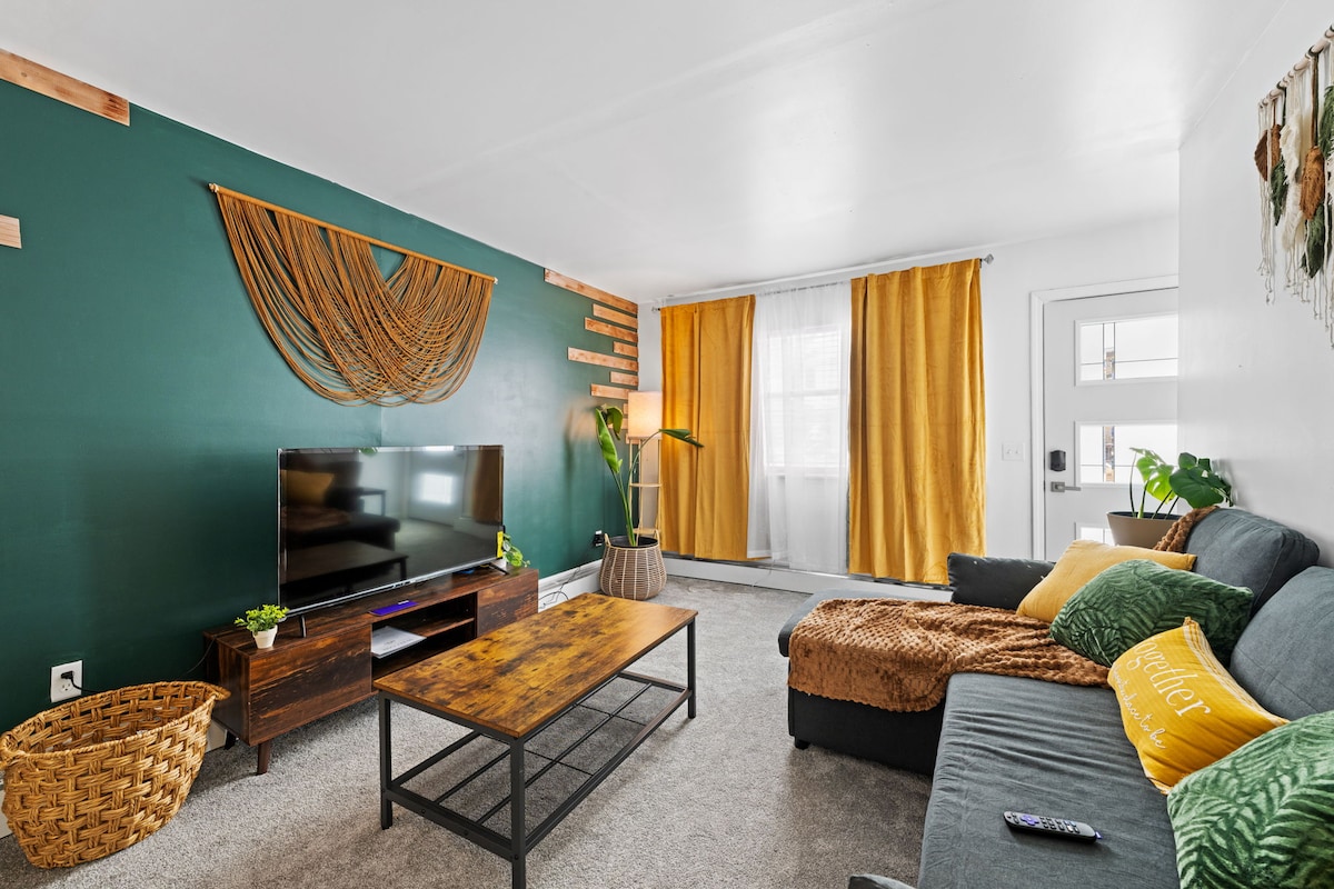 This charming 1920-built apartment, nestled in a working-class historical neighborhood of Cleveland, offers a perfect blend of historic character and modern amenities, ideal for your next Cleveland getaway. - Dedicated work station w. a computer monitor - Up to 2 car off street parking - Central AC - Dogs are welcome! $50 pet fee per dog per stay. Sorry no cats. - NO unregistered overnight guests are permitted. NO parties or gatherings - 5 minutes to downtown Cleveland