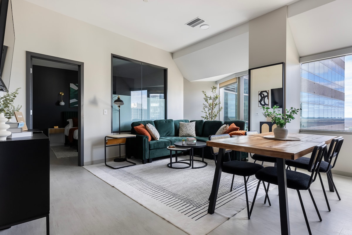 Welcome to Alizée, one of four boutique suites located within Tremont's newest apartment community, Driftwood! Our modern, efficiently designed suites offer a perfect blend of comfort and style. Featuring floor-to-ceiling windows, each space is filled with natural light, creating an open and airy feel despite its cozy footprint. Carefully selected finishes, decor, and warm architectural lighting add to the inviting atmosphere, making it an ideal retreat for solo travelers or couples.