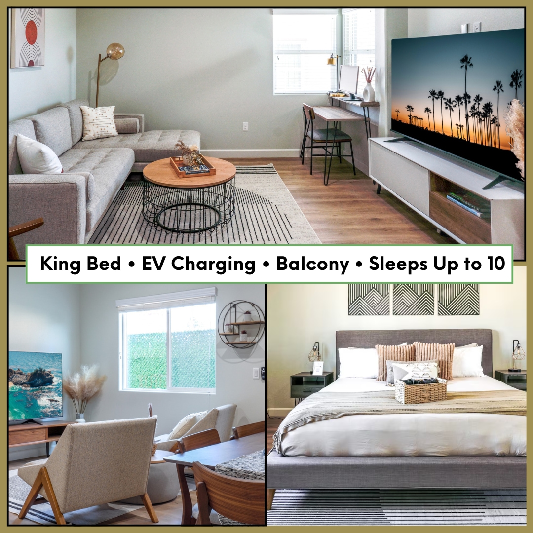 Spectacular newly remodeled modern townhome with luxurious furnishings less than 3 blocks from the beach! Enjoy the spacious layout with a 75"4K TV, Xbox, Ps4, coffee bar, private patio w/ fire pit, EV Charger, & more. Fully stocked garage w/ tons of complimentary beach accessories including surfboards, boogie boards, beach wagon, ice chest, beach chairs and more. We even have rentable e-bikes! Perfect for families, couples, or business travelers. Book now for the ultimate beachside escape!