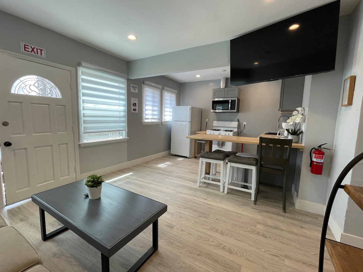 The private second floor of our home (we live downstairs); completely remodeled. This is a classic 1960's beach house with brand new windows, doors, floors, kitchen, bathrooms, paint, furnishings, appliances - you name it. We are super proud of the finished look and know it will make a wonderful home away from home! Style is an eclectic mix of beachy mid-century and maximalism (read: FUN). Must be 25 to book. Do not book this for your kids. Owner managed with attention to detail.