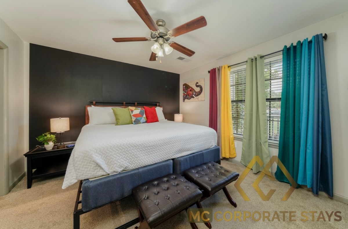 Just 3 minutes from the Space & Rocket Center, Redstone Arsenal Gate 9, Bridge Street where all the eateries and shopping take place. This stylish 1BR KING bed, 1st first unit is perfect for a business professional or a leisure traveler. Enjoy the private patio or take a dip in the pool, catch some sun, or barbecue on the grill. Stay fit in our 24 hour gym access. Show off in style with this hidden gem 💎 book now for a relaxing, active stay!