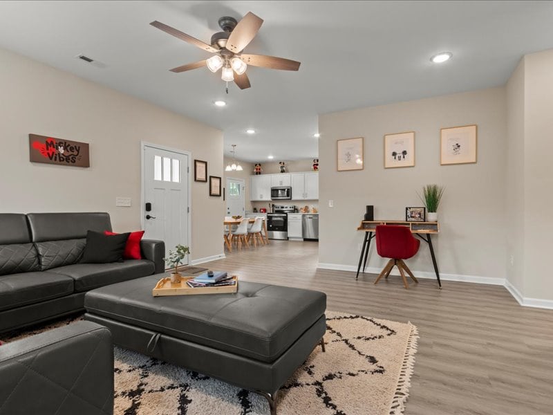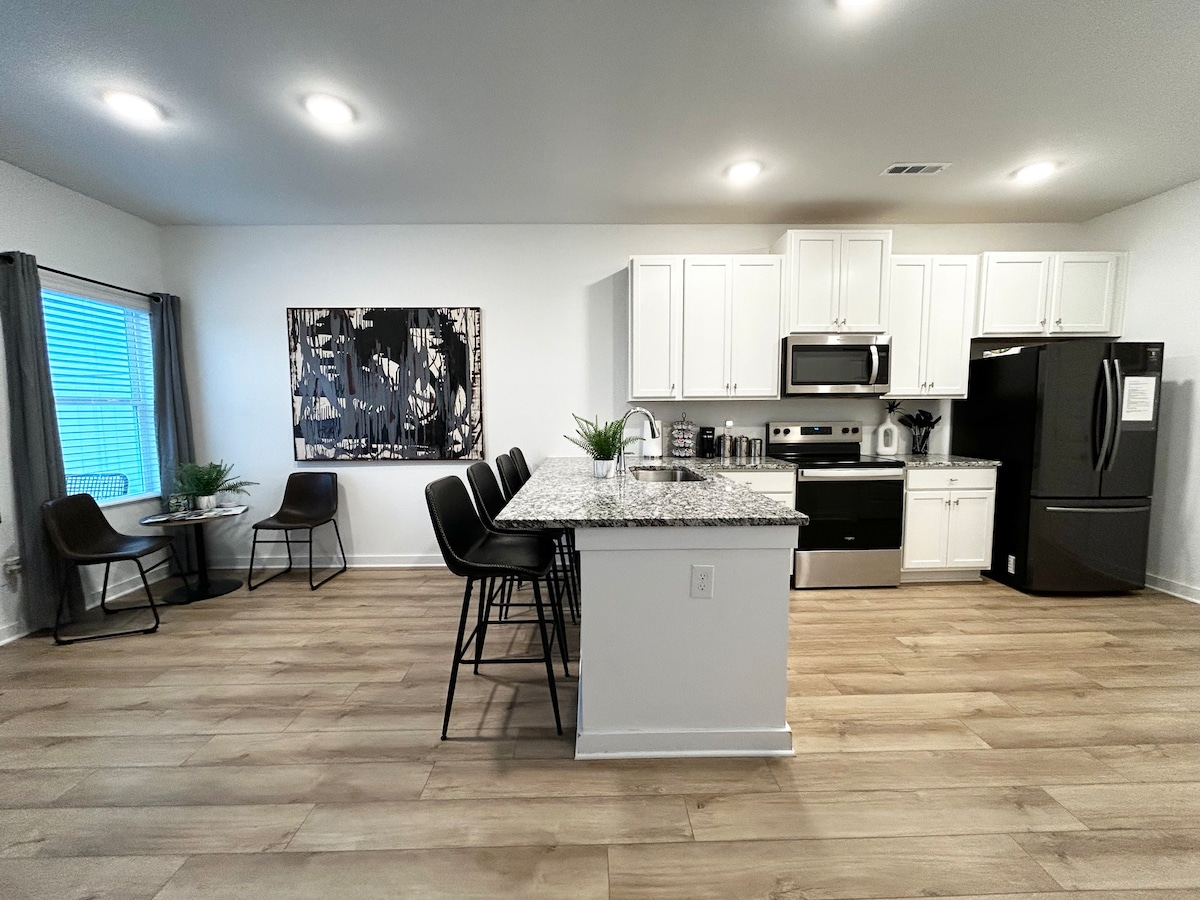 Embark on an interstellar adventure at our rocket-inspired retreat in Huntsville, AL! Our three bedroom, three bath home offers luxury and excitement. Experience cozy bedrooms, each with their own private bathrooms, sleek interiors, a gourmet kitchen, and much more. Minutes from Downtown, the Interstate, and of course the U.S. Space & Rocket Center. Make memories that are truly out of this world—book now for an unforgettable adventure!