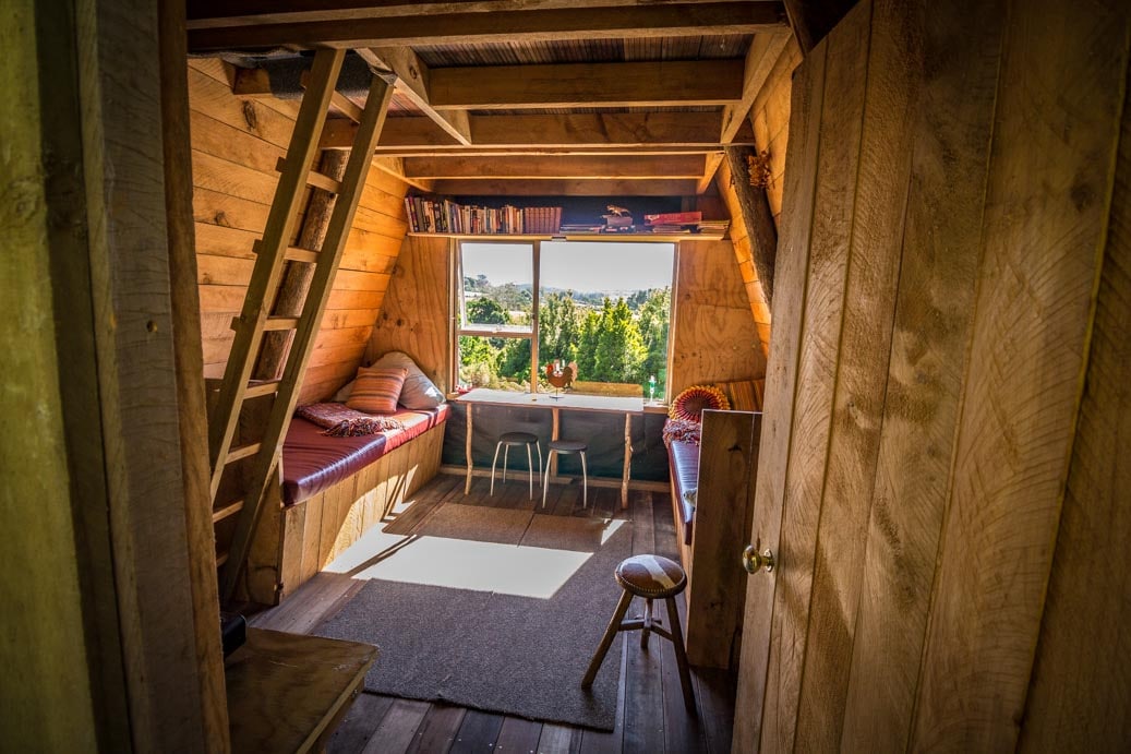 A tramping-style A-frame chalet nestled against rimu trees on the edge of a stunning 15-acre native forest block close to the Hunua Ranges in rural South Auckland. Built by the owners using macrocarpa timber grown on the property, it was intended to be a place where their grandchildren could enjoy sleepovers in the forest and afternoon adventures. They soon realised though, that such a special place should be shared so they decided to make it available to others. Cosy in winter, cool in summer!