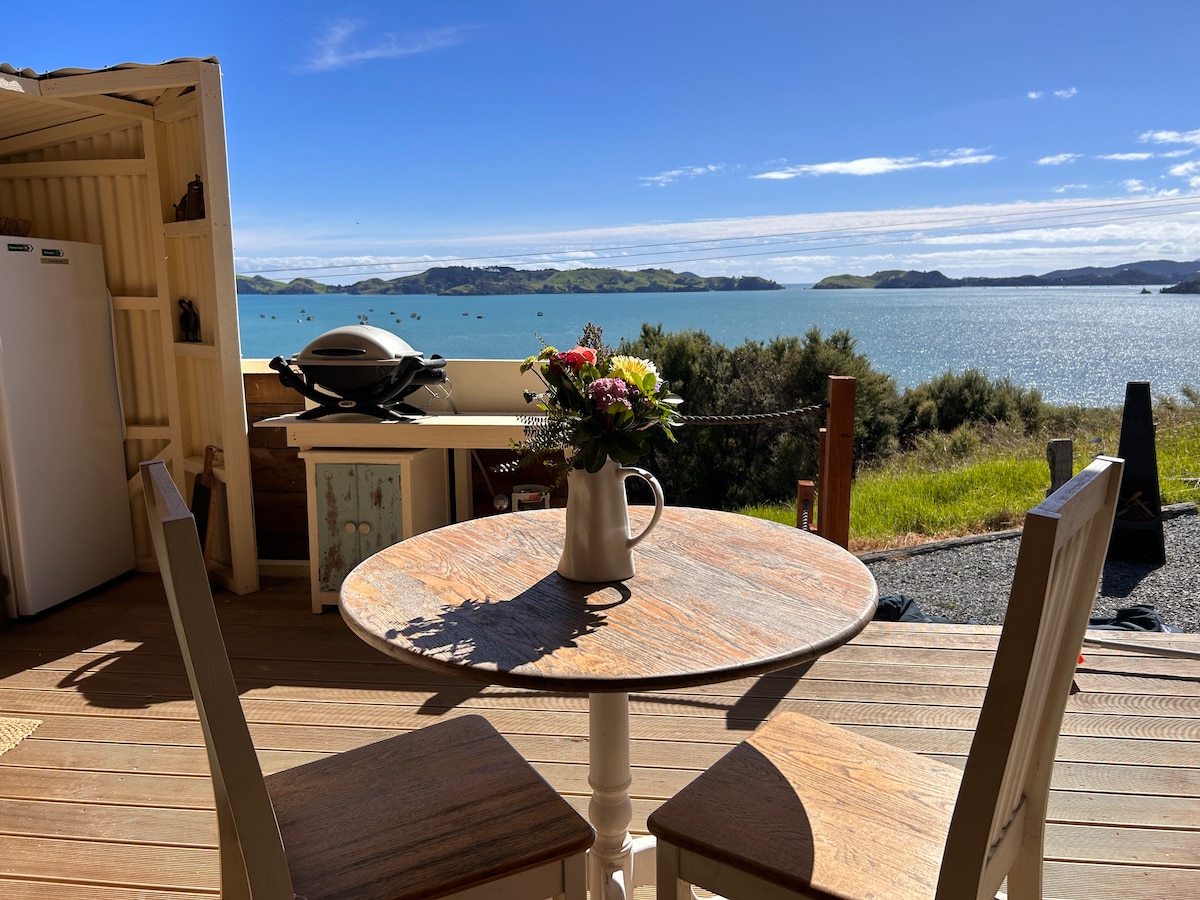 The Bus Depot is a rustic retreat overlooking the beautiful firth of Thames. A beautifully restored 1979 Bedford bus which has all the modern comforts but still retains original features of the bus, this area has sleeping for two along with kitchen area, fridge, gas stove and a dining area on the covered deck. From the daybed to the loft space or going for a walk on the farm or just sitting in front of the fire you can enjoy the views at this outstanding location.