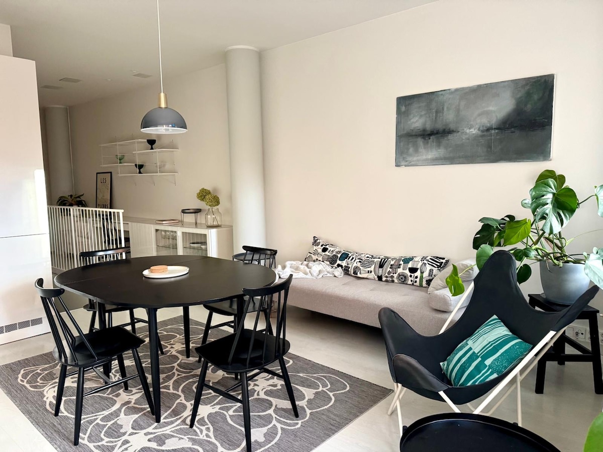The apartment has been renovated in spring 2019 with a completely new kitchen and 1.5 bathrooms. The kitchen should meet the demands of a good home cook. Basic amenities are always available, we will try to meet extra requests. Netflix is for free. The apartment is best suited for two adults but there is a couch in the living room that is spacious and comfortable enough for sleeping as well. House-trained pets are welcome. There is a balcony where smoking is allowed.