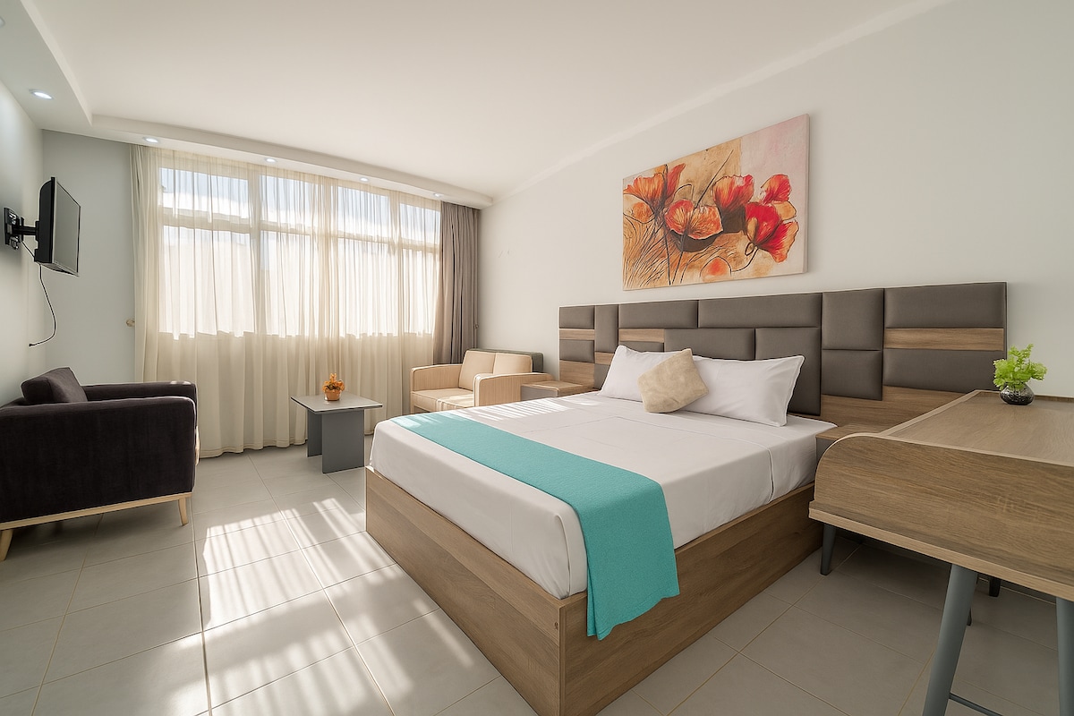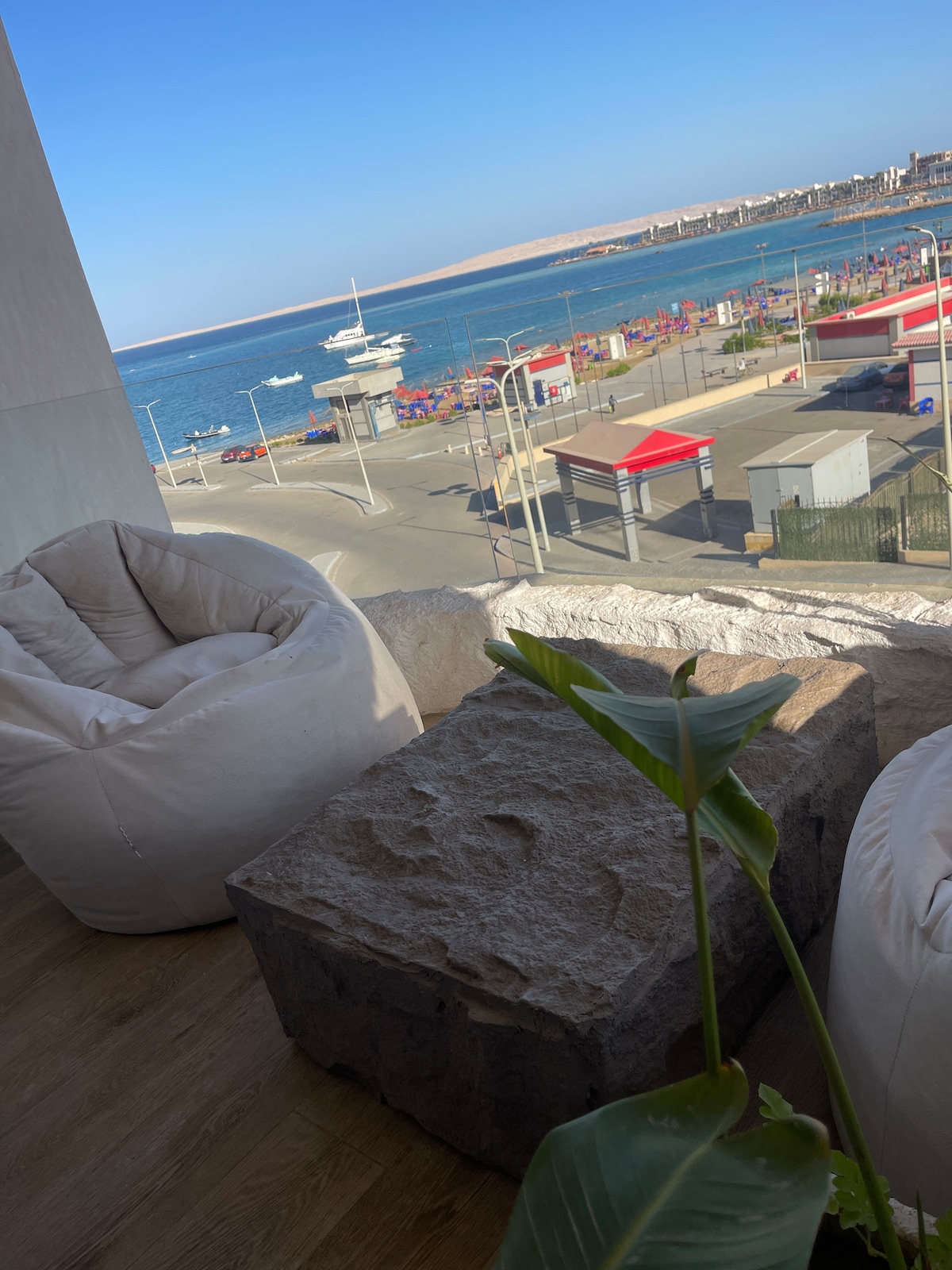Wake up to breathtaking ocean views and the soothing sound of waves in our elegantly designed beachfront apartment. 🌊✨ Located in the heart of Hurghada, this stylish retreat offers high-end furnishings, calming interiors, and modern amenities for a truly relaxing stay. Enjoy stunning views of the beach. vibrant city life and top attractions—all just moments away! 🏖️🌇