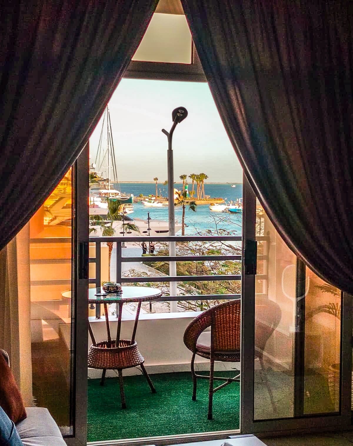 Stylish marina apartment with direct sea and Marina views, located in the very heart of Hurghada just steps from the Marina gate and Sheraton Street. Surrounded by cafés, restaurants, supermarkets, and diving centers, everything you need is literally outside your door. Bright, open-plan, and thoughtfully designed, this apartment offers a calm and comfortable stay away from crowded, mass-rental units. Ideal for up to 3 guests, whether you’re here to explore the city or simply relax by the sea.