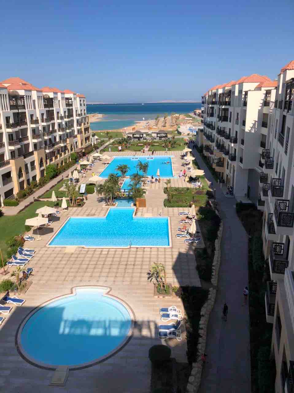 غرفه فندقيه داخل كومباوند وسط المدينة اطلاله على البحر وحمام السباحه كما يوجد مطبخ كامل وشاطي خاص وقريب من جميع الخدمات مثل الكافيهات والمطاعم والمواصلات ويوجد ٢ حمام سباحه