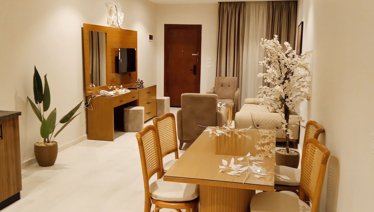 Indulge in luxury and relaxation at our recently renovated 1-bedroom apartment nestled within The View compound on Sheraton Road, Hurghada. With exclusive access to a private beach and multiple pools. Also the newly opened clubhouse, which comes with a Gym, Pool and Ping Pong table is available for you. It's the ultimate getaway for your Hurghada adventure. Whether you're seeking beachside serenity or city exploration, this stylish retreat offers everything you need for an unforgettable stay.