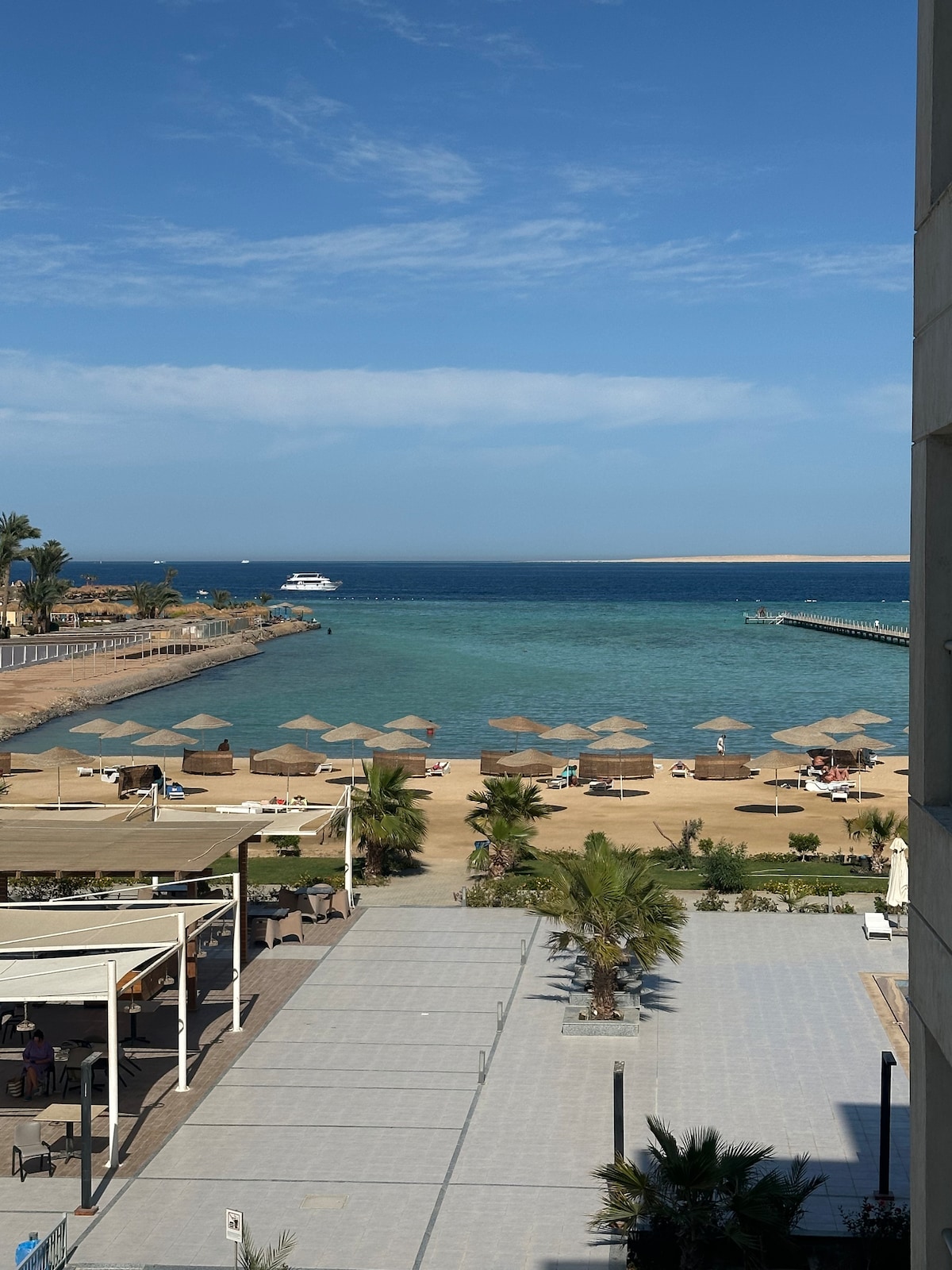 The place is a cozy modern studio overlooking one of the best wide sea view in Hurghada. The place is located in the heart of the city overlooking the corniche with direct access to the best the magnificent boulevard over the red sea. The place have direct access to three pools in the complex and a direct bridge to the beach.The studio is suitable for couples, friends and small families that seek magnificent comfortable stay with a great sea view and a perfectly located studio in the whole city.
