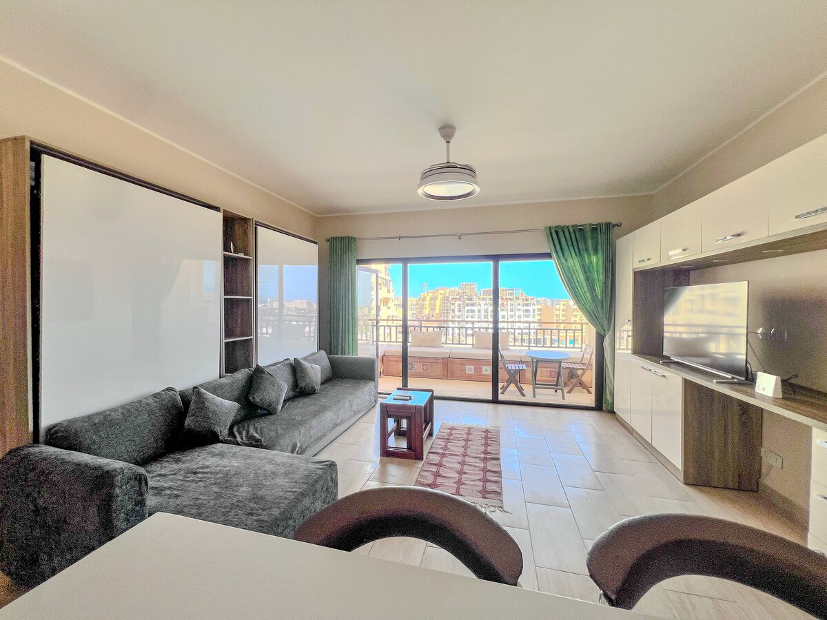 Imagine having everything you need in one place! Fully equipped apartment located in the heart of Hurghada, close to Downtown so no need for transportation everything you need is just steps away. The apartment located opposite the Marina, in front of the second gate. Enjoy a beautiful direct view of the Red Sea and the Marina, one of the most iconic and lively spots in Hurghada. Close to best beaches, restaurants, cafés, bars gyms, supermarkets, pharmacies, Largest mosque in Hurghada.