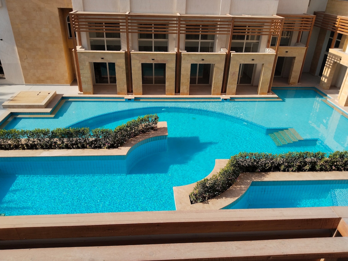 Sea & Pool view 2 Bedroom Apartment in The View Compound in the heart of hurghada . Apartment with Sea & Pool View Located In The View Compound . - Location : Old Sheraton Road , Felfla . Hurghada . - Area / 125 M² - 2 Bed rooms - 3 Bed - 2 Bathroom - Big Reception with Sea View - Big terrace Sea View & Pool View - Euroean Style & Luxury Funrniture - Outdoor Furniture - 3 Air conditions - Italian Style Kitchen Fully Equipment - Private Beach - 3 Swimming Pool